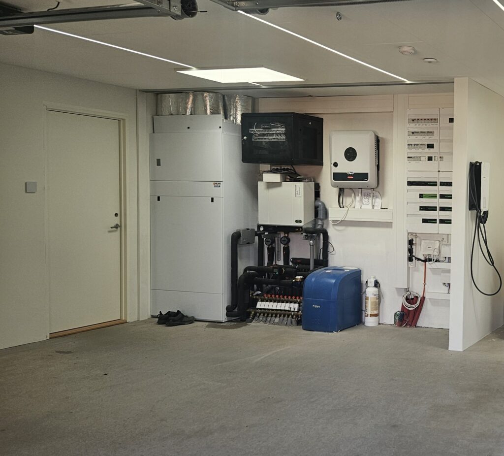 The underfloor heating is controlled and when there are no need for heating, the combinated heatpump/ventilation shifts down. The heatpump is controlled with modbus air.