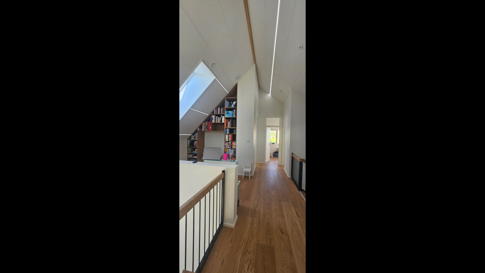The rooms on the upstairs floor have skylights and if the temparature gets to high, the Velux skylights automaticly opens up, if the conditons is right. The Velux shades are also integrated. The system also monitors the air quality and if its to bad, the ventilation system ramps up.