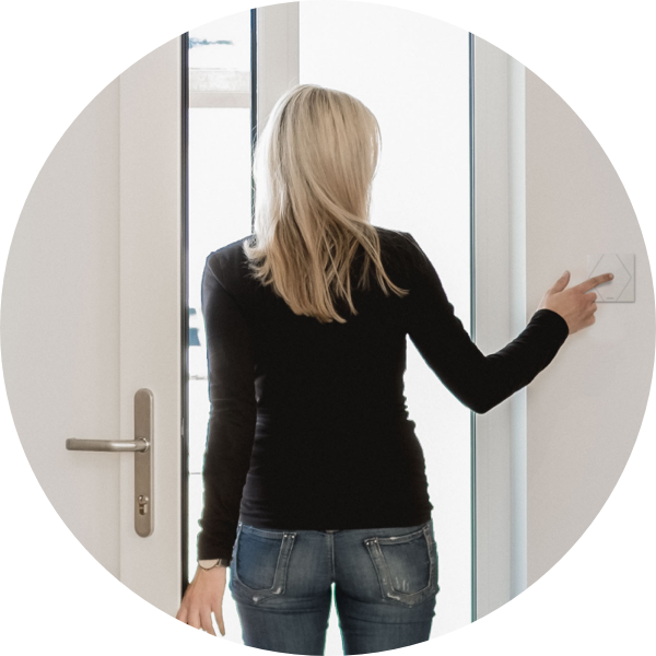 L’ultimo ad uscire di casa attiva la funzione casa off con un triplo clic sul pulsante Touch all’uscita di casa. Le luci si spengono, i dispositivi di standby sono scollegati dalla rete elettrica, il sistema di allarme viene attivato, le tapparelle attivano la funzione di ombreggiatura automatica e se ci sono delle finestre aperte, appare una notifica nell’app che informa di quale finestra si tratta.