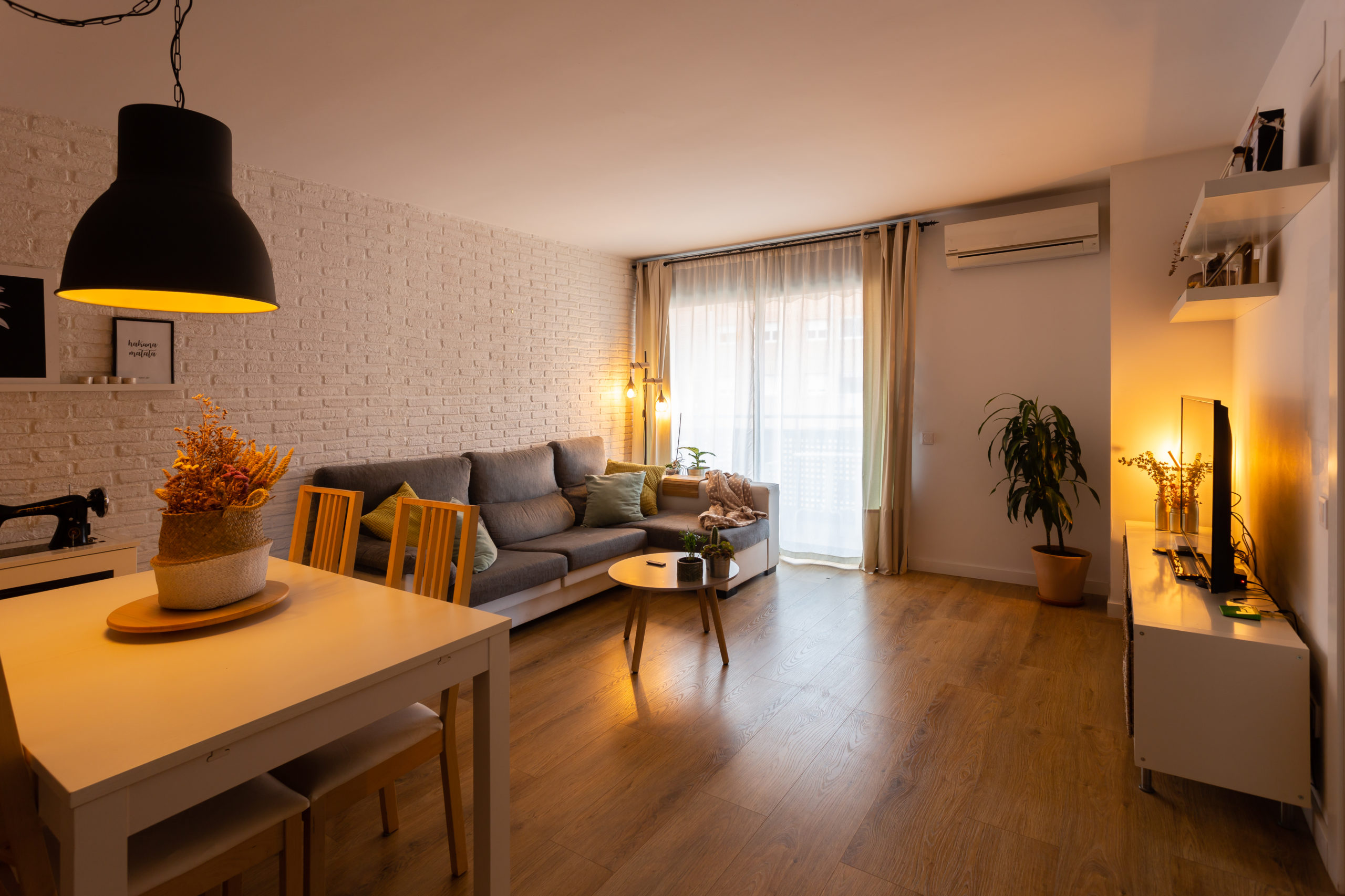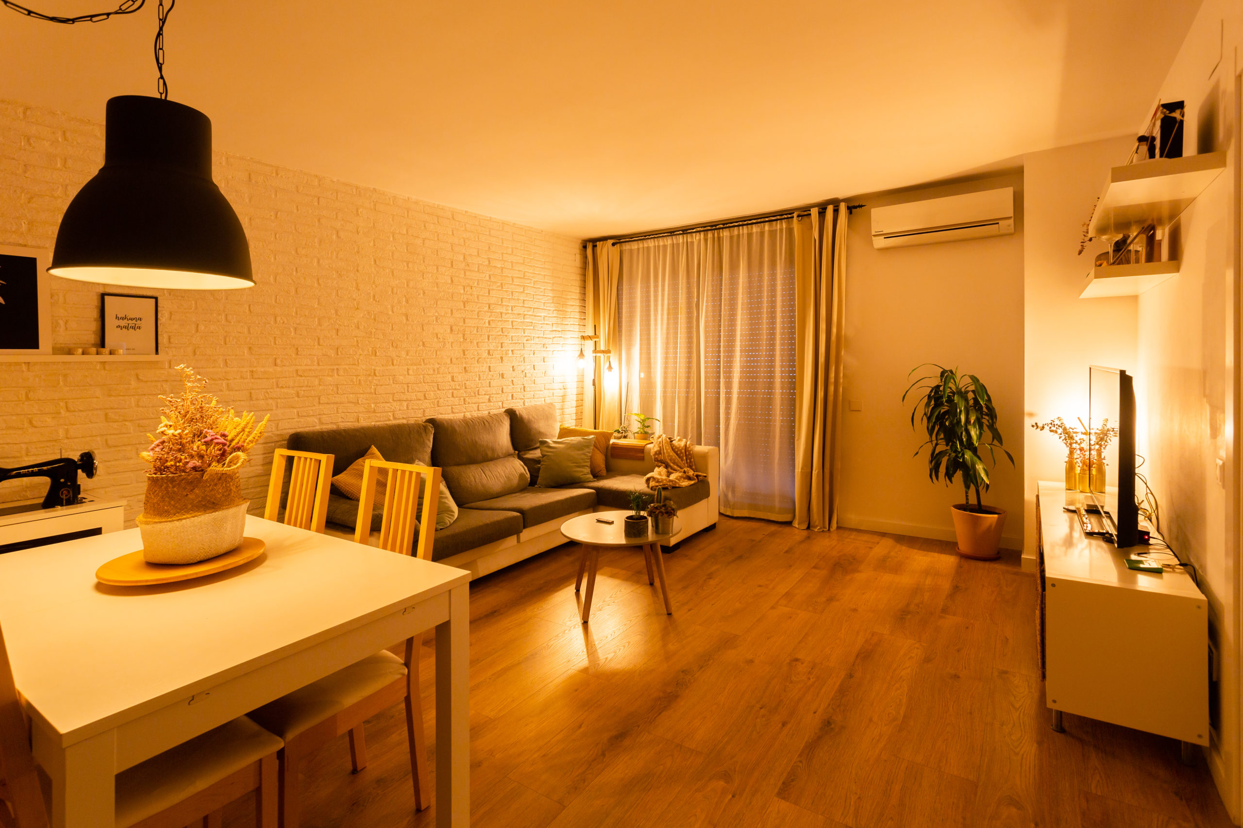 Nella sala da pranzo ci sono diversi scenari luce, in funzione dell’ora di cena, dell’illuminazione generale o dell’ambiente cinema”, che attualmente è vincolato alle tapparelle e al televisore.