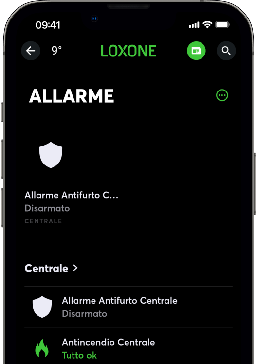 - Allarmi tecnici: perdite d’acqua, fumo o consumi anomali? Loxone ti avvisa subito.