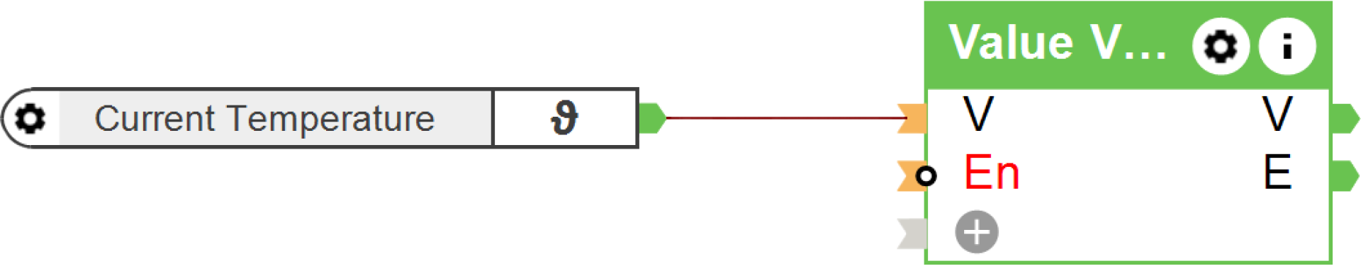 Convalida un valore analogico. Molto pratico quando, ad esempio, si misura la temperatura nei tubi di una piscina: la temperatura misurata è valida quando la pompa è in funzione, ma non quando l’acqua è nei tubi.