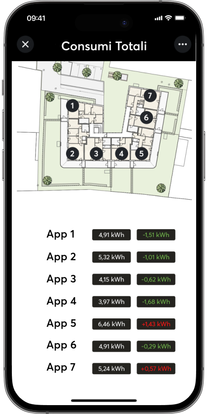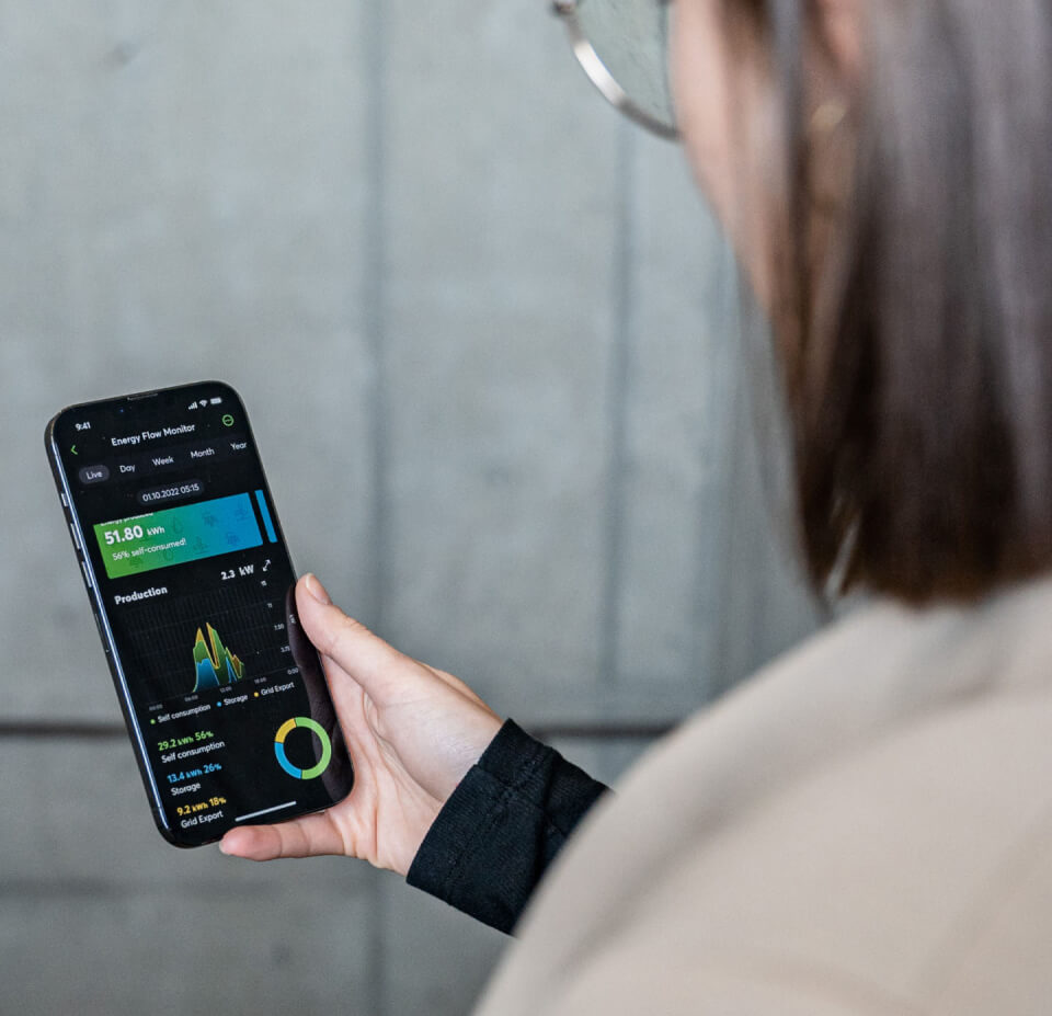 Inclusa un’applicazione con visualizzazione dei flussi energetici e statistiche. Proprietari e inquilini possono utilizzare la stessa applicazione, con permessi diversi.  Parte dell’applicazione è l’accesso remoto a tutte le funzioni (senza costi aggiuntivi).