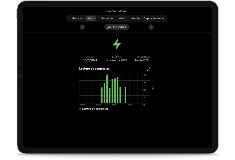 Fornisce una lettura del consumo idrico attuale e cumulativo. La visualizzazione del consumo in tempo reale fornisce piena trasparenza su come viene utilizzata l’acqua. Puoi accedere alle statistiche che mostrano i modelli di consumo giornalieri, settimanali e mensili, permettendoti di capire come viene utilizzata l’acqua nel tempo. Ciò consente di identificare opportunità per ridurre i consumi e migliorare l’efficienza