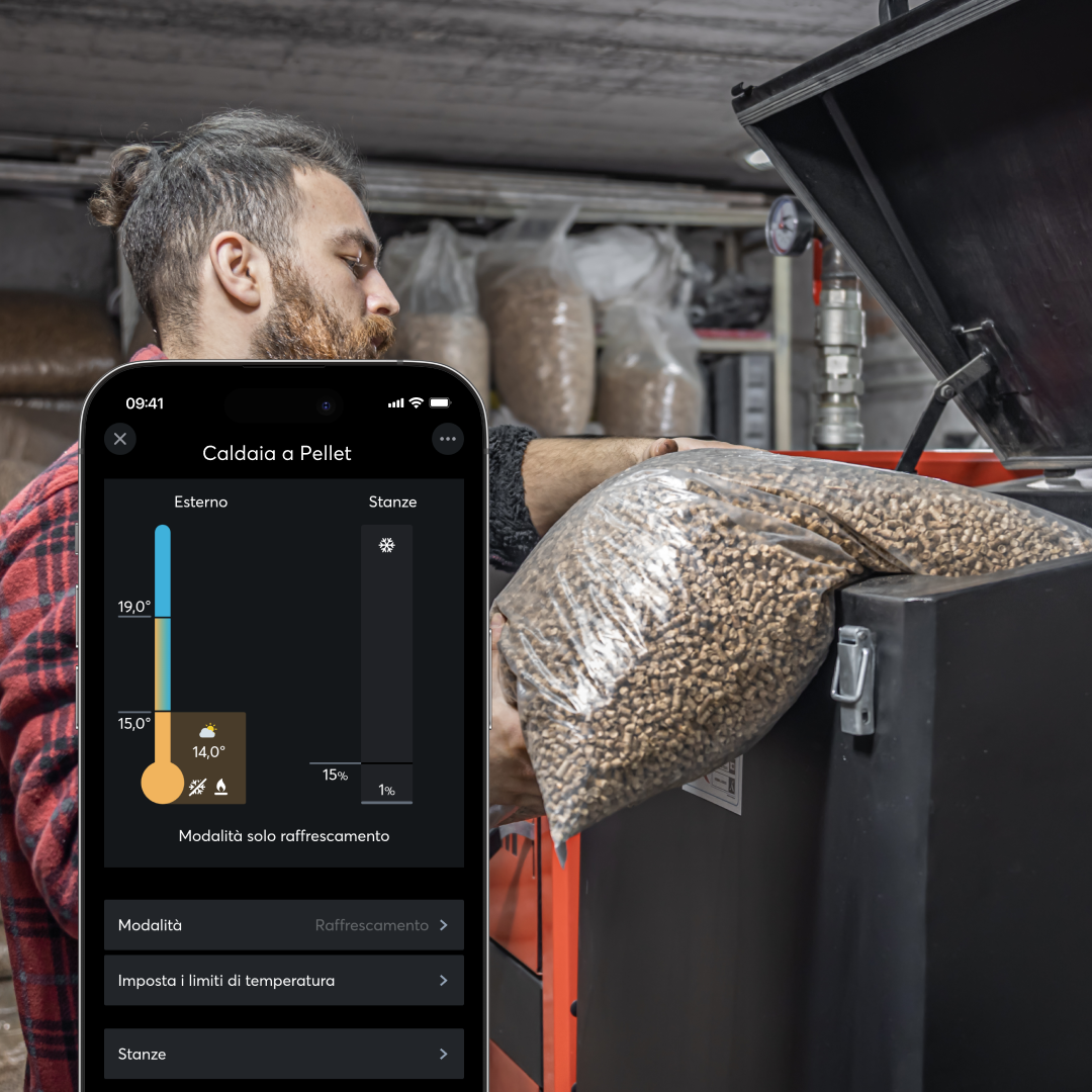 • è possibile aggiungere sensori per rilevare il livello del combustibile e ricevere notifiche via app. Nei modelli più avanzati, è possibile coordinare riscaldamento e ricambio d’aria per migliorare il comfort indoor.
