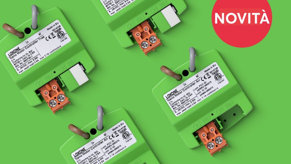 I prodotti Loxone Nano sono caratterizzati da un design compatto e permettono quindi una facile installazione dei componenti di campo. Con il nuovo Nano Motor Controller Air (Numero dell’articolo 100472) e il Nano Motor Controller Tree (Numero dell’articolo 100473) estendiamo la gamma di prodotti e offriamo la possibilità di controllare i motori DC e di regolare le luci LED.