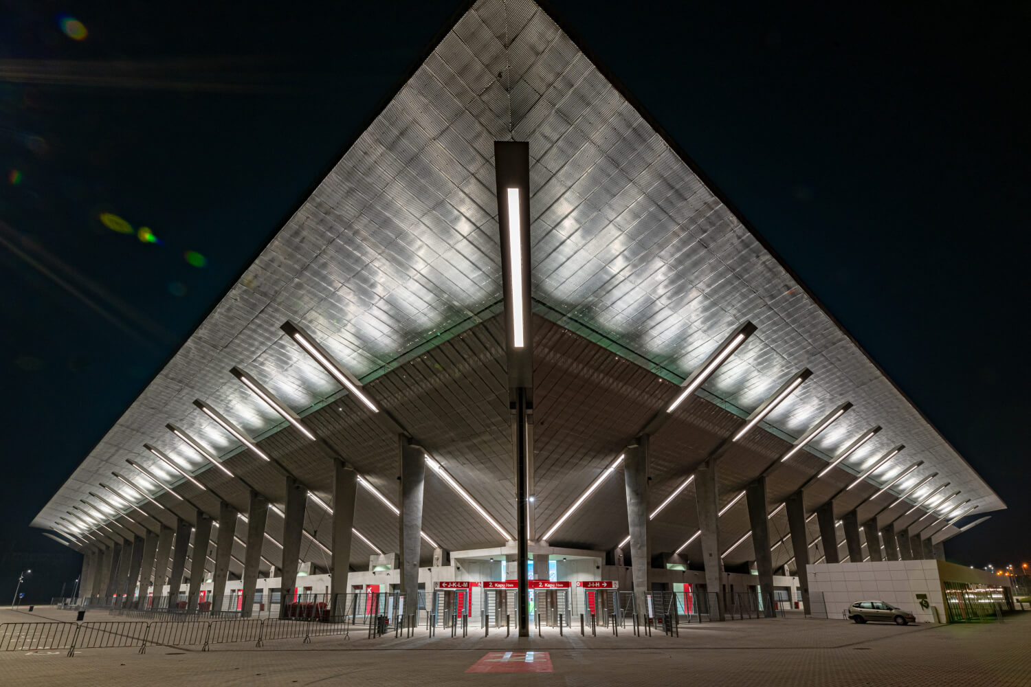 Grazie all’illuminazione esterna, i tifosi del DVTK possono vedere chiaramente se si sta svolgendo un allenamento o una partita. A seconda dell’evento ci sono diversi scenari luce per l’illuminazione esterna.