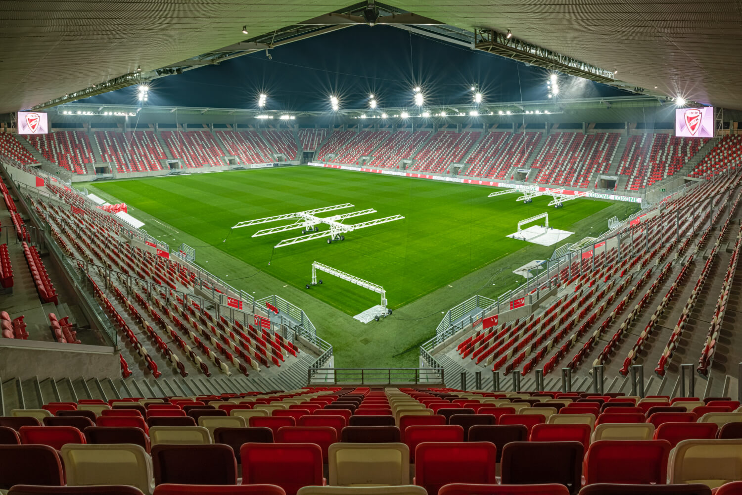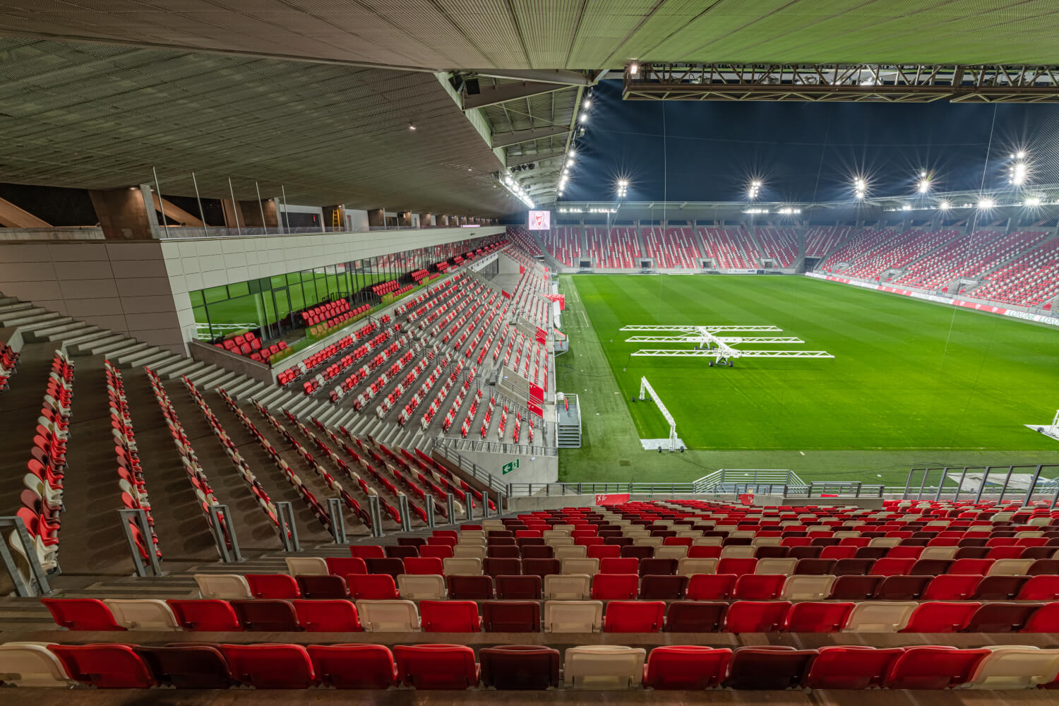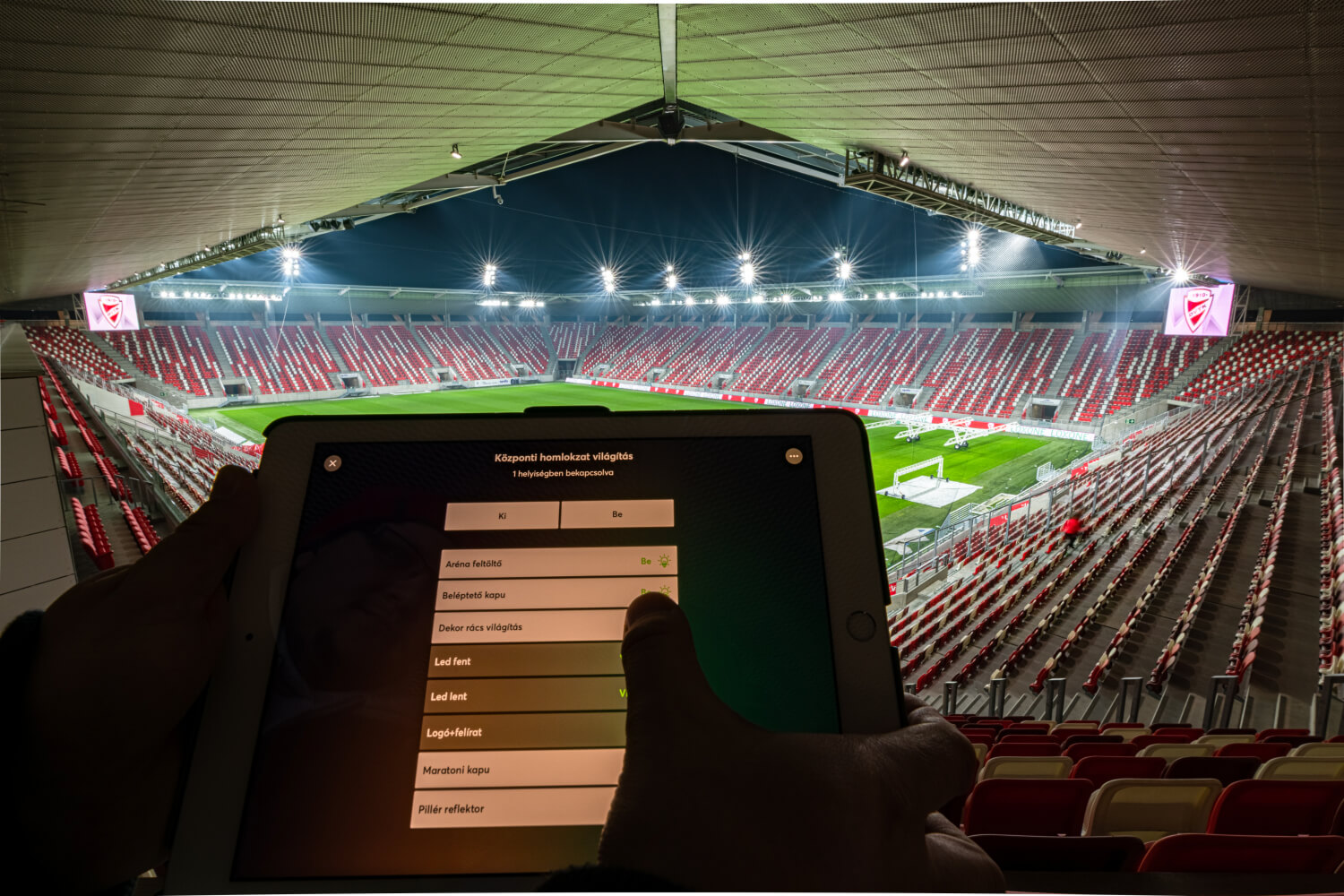 Il campo da calcio viene utilizzato per diversi eventi: allenamento, partita nella serie A ungherese, partite con trasmissione televisiva, partita UEFA ecc. Tutti questi eventi richiedono un’illuminazione diversa del campo.