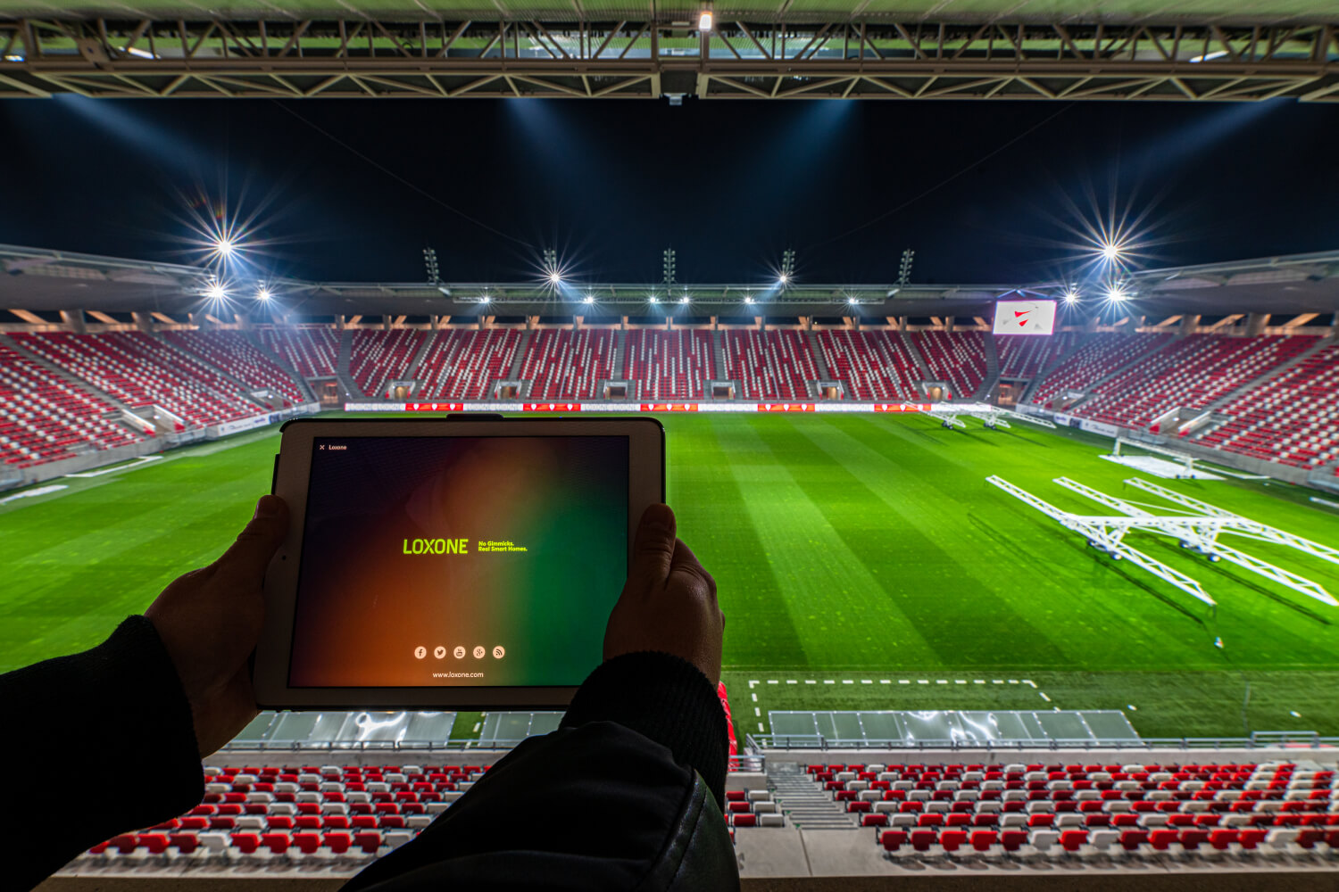 La gestione e il controllo di uno stadio di calcio porta con sé alcune sfide. Importanti qui sono le diverse autorizzazioni, gli automatismi e l’intervento manuale, se necessario. Con l’app Loxone, il Loxone Touch e la gestione degli utenti, tutto questo è coperto da Loxone e può essere adattato in qualsiasi momento.