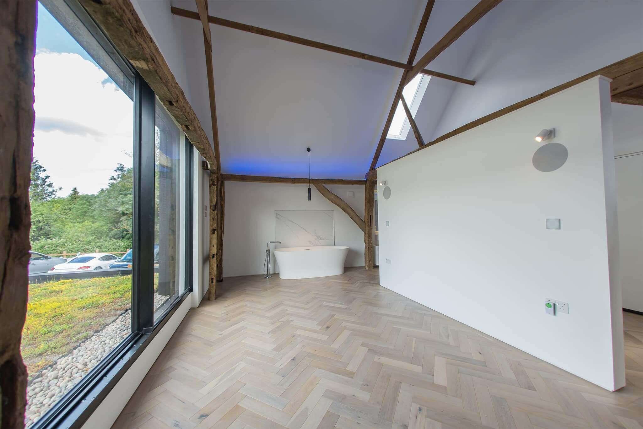 Già durante una precedente ristrutturazione, i dipendenti di “BBA Developments” hanno implementato semplici funzioni di Smart Home. Ai proprietari è piaciuta così tanto questa attrezzatura di base che volevano dotare l’intero fienile. Dopo una visita presso lo showroom Loxone del nostro partner “Hughes Smart”, è stato subito chiaro: la tecnologia per questa ristrutturazione doveva essere quella di Loxone.