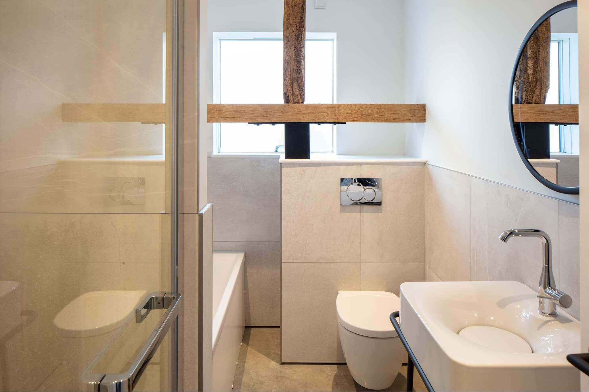Era molto importante che il carattere di questo fienile del 19° secolo rimanesse inalterato nonostante i lavori di restauro. Le strutture originali e i tratti caratteristici del fienile non solo sono stati adottati, ma sono stati integrati nel nuovo design interno in modo spettacolare. Nuovo e vecchio si uniscono – una delle tante ragioni che rendono “The Barn” così unico. Il vecchio fienile, oltre che dal punto di vista visivo, si distingue anche per le sue raffinatezze tecniche.