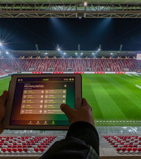 Lo stadio di casa della squadra di calcio ungherese DVTK contiene 7 Miniserver. Loxone è stato implementato in questo progetto perché il sistema consente di controllare l’intera illuminazione dello stadio, tra altre funzionalità. Il riscaldamento del drenaggio si attiva automaticamente non appena c’è il rischio di formazione di ghiaccio, e la temperatura nel distributore è anche monitorizzata da Loxone.