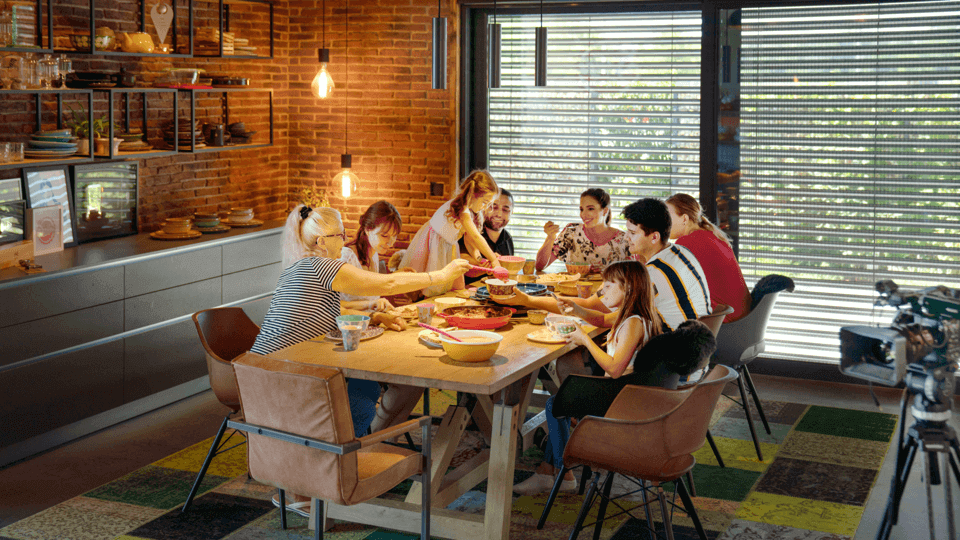 Alla fine di una lunga giornata di riprese, l’edificio intelligente mostra il suo lato migliore. Al termine del lavoro, Sally e il suo team, con il quale coltiva una relazione molto familiare, si ritagliano spesso dei momenti piacevoli insieme. Accattivanti scenari luce e la musica di sottofondo appropriata assicurano il giusto ambiente per finire la giornata in bellezza. Con la costruzione dell’edificio intelligente un sogno dell’imprenditrice e madre si è trasformato in realtà. Loxone sostiene la giovane donna in carriera perché possa concentrarsi completamente sulla sua famiglia e sulla sua azienda.