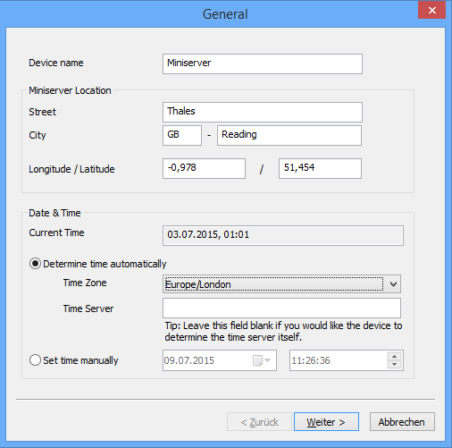 Se il Miniserver viene messo in funzione la prima volta, è possibile effettuare le impostazioni di base del sistema con un clic su “configurazioni iniziali”.