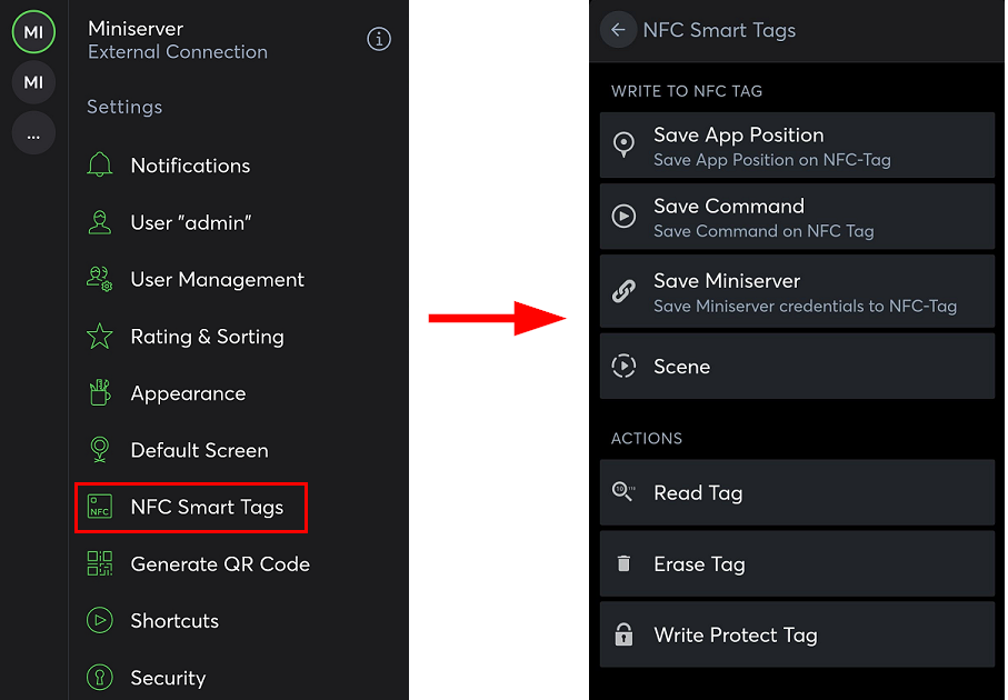 Nelle impostazioni è possibile selezionare la voce di menu “Smart Tag NFC”.