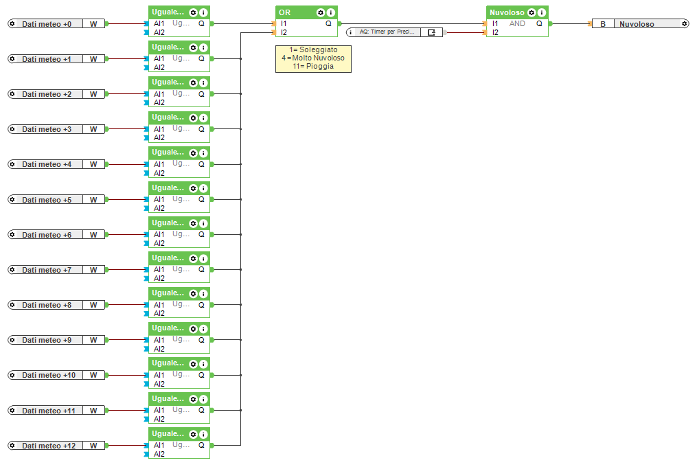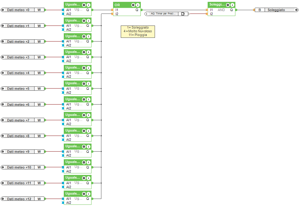 Dato che può accedere che piova nelle prossime 12 ore mentre il sole splende o il cielo è nuvoloso, sono attivate 3 diverse scenari luce. Questo valore può naturalmente essere adattato in ogni momento consultando la documentazione: