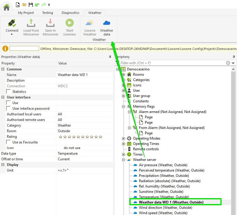 Affinché i dati meteo siano accurati rispetto alla posizione del Miniserver, è importante impostare una posizione all’interno delle proprietà del progetto.