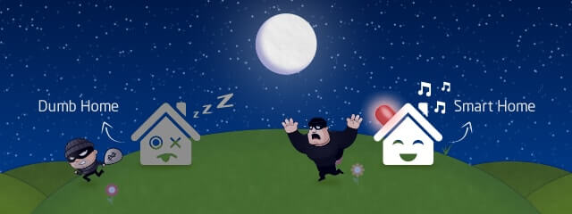 Dankzij onze raam- en deurcontacten en bewegingsmelders wordt u onmiddellijk verwittigd wanneer iemand tracht binnen te dringen. Jaag de inbrekers weg door de lichten fel te laten knipperen, de muziek luid te laten spelen en de rolluiken omhoog te doen. Wanneer u niet thuis bent, kunt u ook gebruik maken van onze aanwezigheidssimulatie die ervoor zorgt dat het lijkt alsof er iemand aanwezig is. Ook onze rookmelders en watersensoren verwittigen u wanneer er rookvorming of waterlekken zijn.
