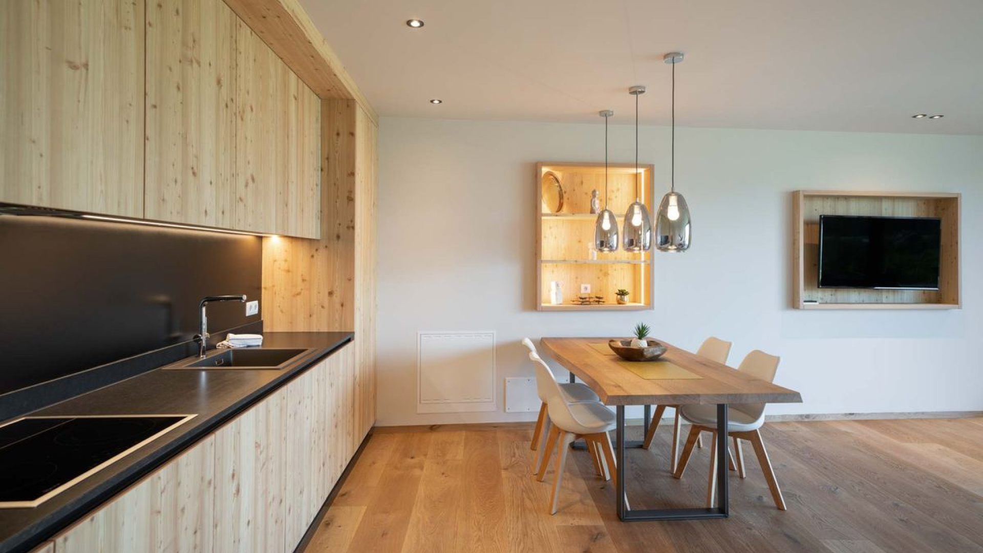Dankzij Loxone bieden wij de gebruikers een eenvoudige en gebruiksvriendelijke ervaring. Met de tijdelijke codes die op onze NFC Code Touch kunnen worden ingevoerd, hebben hotelgasten zelfs geen sleutel nodig om toegang te krijgen tot hun chalet. Zodra de overeenkomstige code is ingevoerd om het chalet binnen te gaan, zijn een aantal functies geconfigureerd om de gebruiker een unieke ervaring te bieden: de zonwering gaat open, het alarmsysteem wordt gedeactiveerd en het licht creëert een warme en gastvrije sfeer.