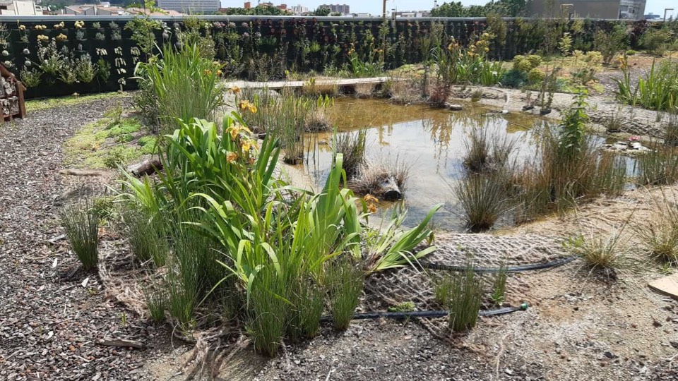 Het kan ook detecteren of er waterverlies is uit de irrigatieleiding, of het magneetventiel geblokkeerd is, of er een technisch defect is of dat er te weinig licht is. Elk incident of falen wordt onmiddellijk opgespoord en gemeld. Hierdoor kan het onderhoudsbedrijf snel handelen. Dit bespaart veel tijd en beschermt het gevelgroen. Op het dak is er een klein waterreservoir met planten en dieren. Het waterpeil wordt voortdurend gecontroleerd. Er wordt een waarschuwing verstuurd als het niveau onder of boven de drempelwaarden komt.