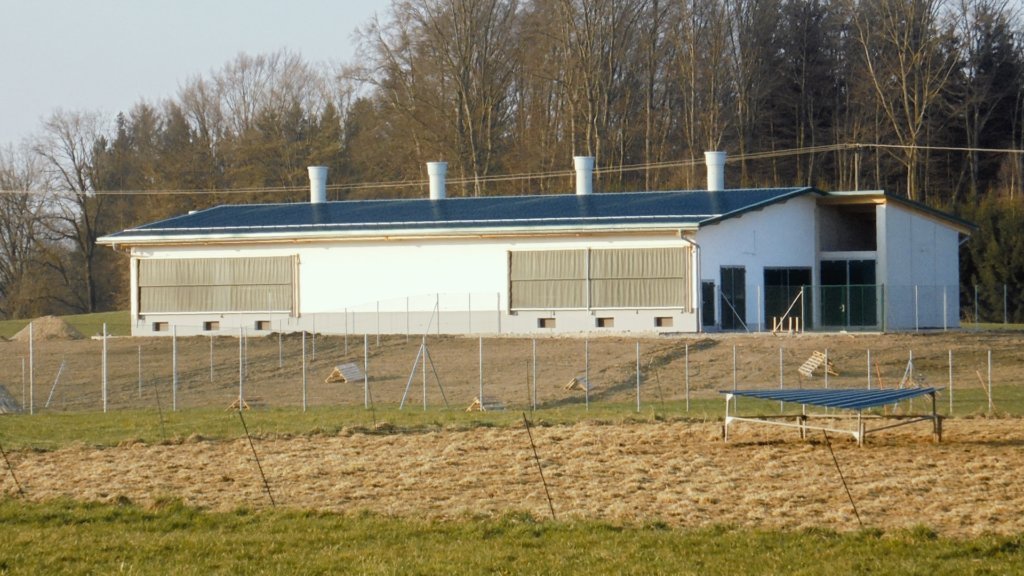 De kippen kunnen de twee volières verlaten en tijd doorbrengen in een buitenverblijf. De tijdsafhankelijke regeling van de in totaal zes loopstallen is gerealiseerd door gebruik te maken van een Relay Extension. Een netconstructie, ook gecontroleerd door de Relay Extension, leidt de kippen indien nodig terug naar de hoofdstal.