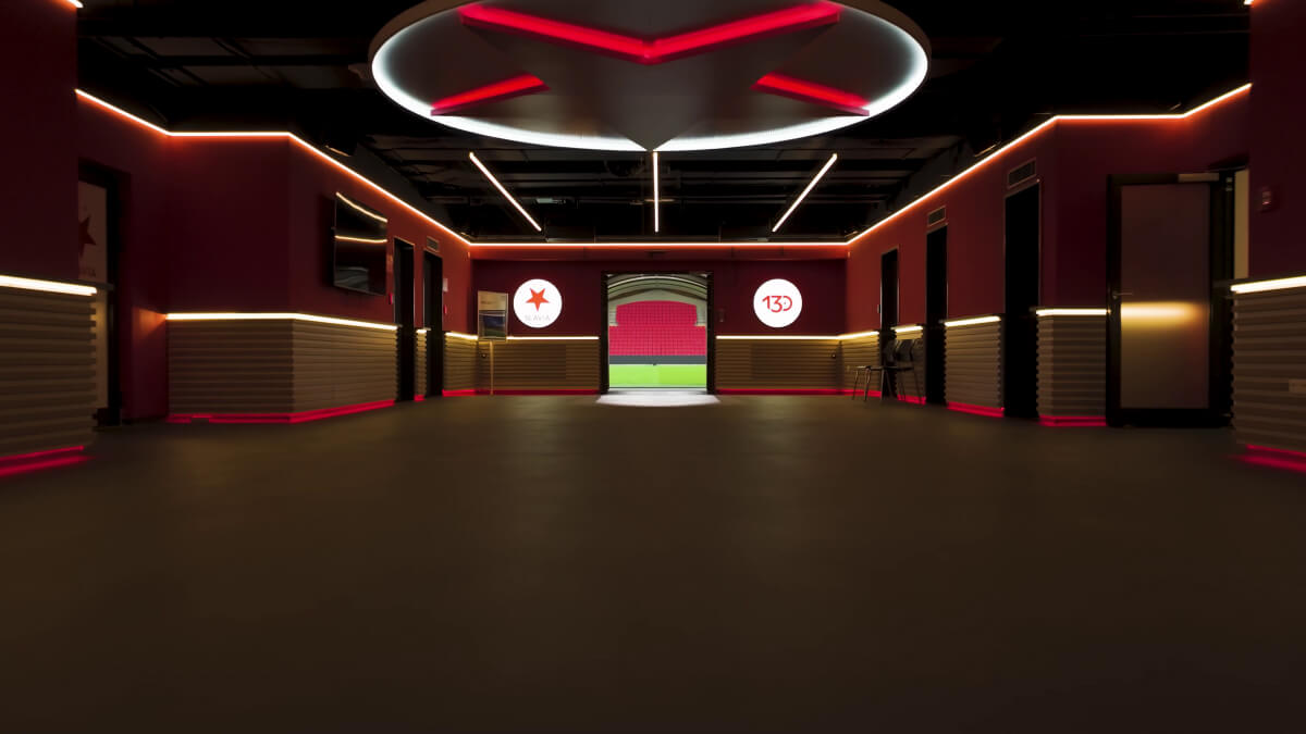 • De verlichting kan op elk moment gemakkelijk worden veranderd – met de mogelijkheid om dit zelfs tijdens de wedstrijd te doen – het stadion is een geweldige locatie die voorbereid is op het hosten van andere sport- en sociale evenementen, boven de wedstrijden van het A-team van Slavia.