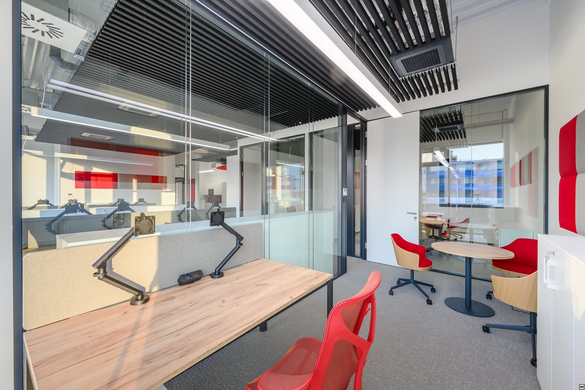 Een fantastische functie die in de kantoorruimten is ingevoerd, is de personalisatie van de werkplek. Dankzij de IP-uitwisseling, waarmee het systeem kan communiceren, kan het naast de identificatie van het tijdstip van aankomst van de werknemers op basis van een chip, ook de aankomst van een werknemer op zijn werkplek registreren. Zodra de werknemer op zijn werkplek aankomt, gaat het licht aan. Als hij zijn plaats verlaat, gaat het licht na enige tijd weer uit. Het resultaat is een aanzienlijke energiebesparing op plaatsen waar op dat moment geen werknemers aanwezig zijn en het dus niet nodig is om deze afzonderlijke werkruimten onnodig te verlichten.