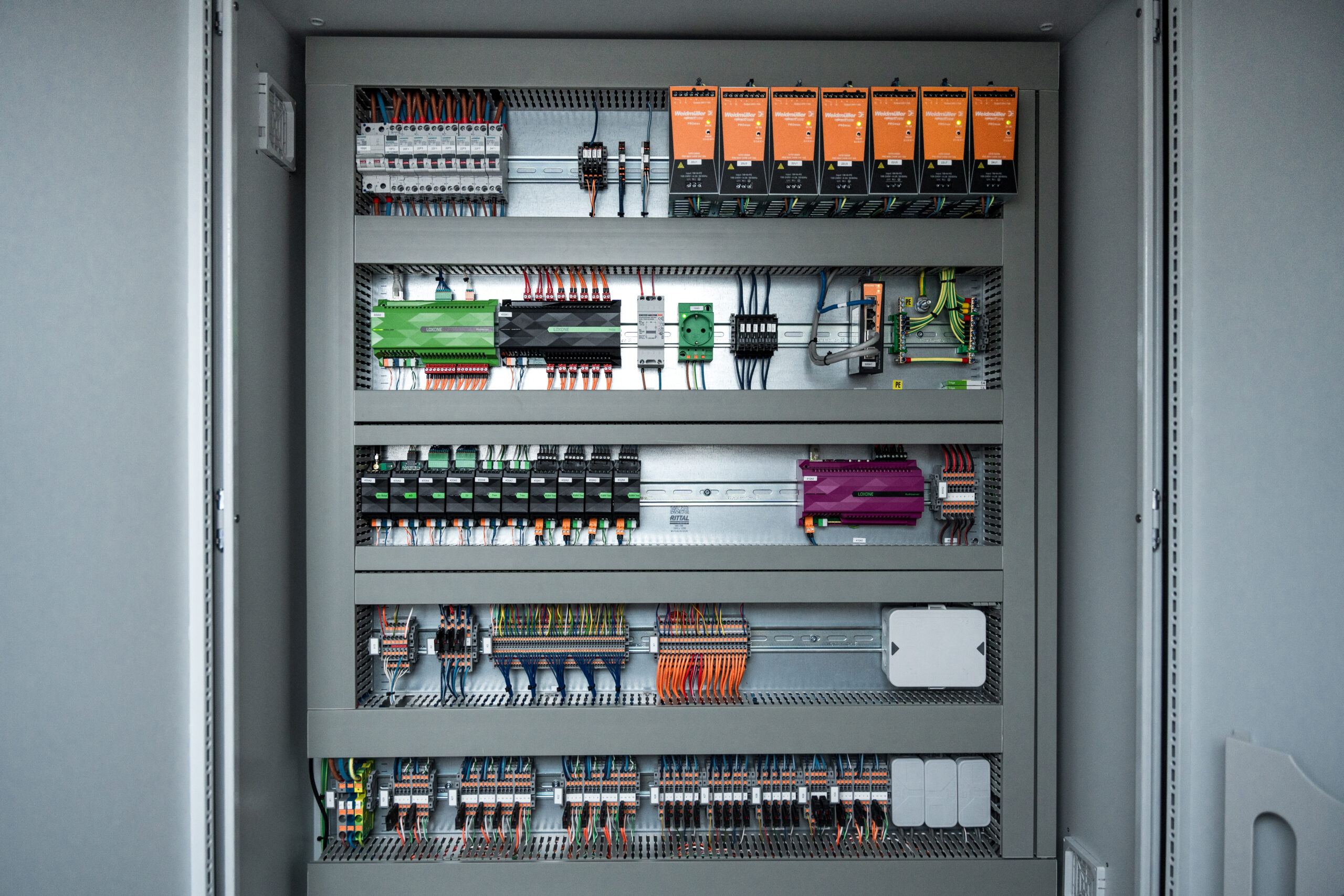“We hebben eigenlijk alleen maar projecten waar we trots op zijn, dit varieert van landhuizen tot moderne villa’s maar ook bedrijfsgebouwen. Het is voor ons altijd de uitdaging om de installaties zo strak mogelijk op te leveren. Dit doen we o.a. door de hoofd Loxone componenten onder te brengen in een eigen besturingskast.” aldus Kees.