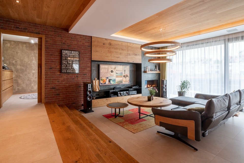 Dit houten huis is volledig milieuvriendelijk en voldoet aan alle standaarden van een passiefwoning. Het wordt beheerd door de Loxone oplossing, die niet alleen voor een optimale regeling van de temperatuur en luchtvochtigheid zorgt, maar ook voor perfecte verlichting en irrigatie van de omringende graslanden. Dit alles wordt automatisch en slim gedaan.