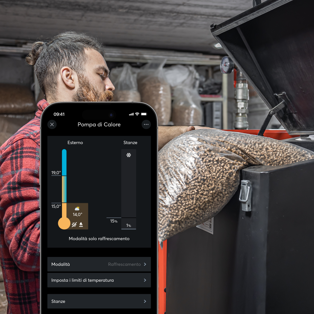 Loxone stuurt de ketel aan via een potentiaalvrij contact, waardoor de installatie niet hoeft te worden aangepast. Dit maakt een intelligente sturing per ruimte mogelijk, volledig geautomatiseerd of via de app.