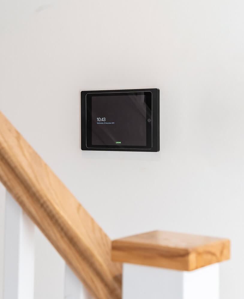 Een Loxone Smart Home werkt gewoon om je heen zonder de noodzaak om dingen voortdurend aan te passen. Mocht iemand echter iets willen veranderen, dan heeft Smartworks een iPad met een slanke iPad muurbevestiging geïnstalleerd – waardoor huiseigenaren een handig centraal punt van controle hebben.