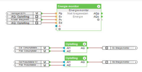 Als Fronius of Kostal gebruikt worden, kunnen deze geselecteerd worden op de bouwsteen.