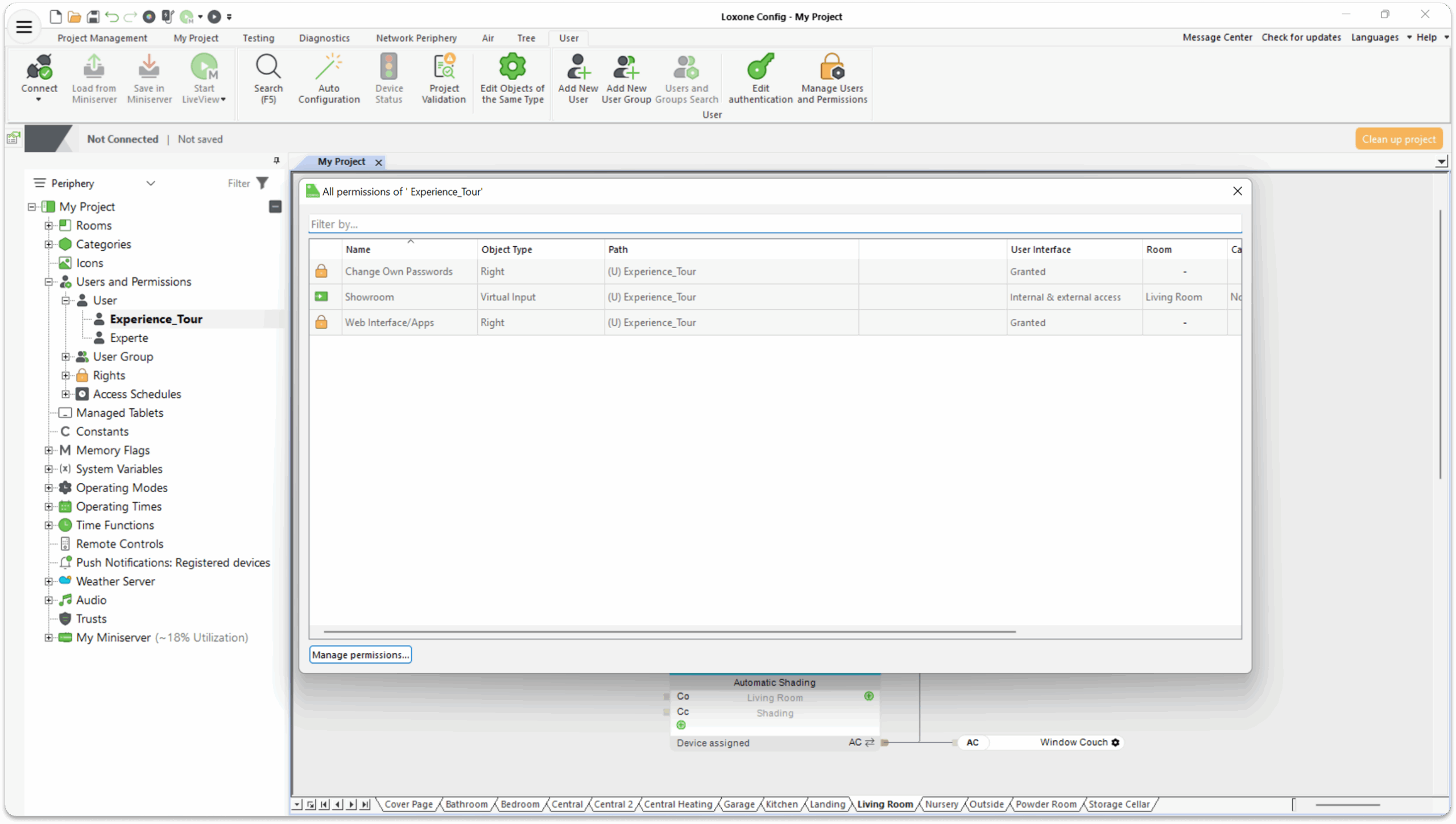 Start de tour, controleer de processen en pas indien nodig de lichtstemmingen, zonwering of audio aan, voor een perfecte klantervaring.