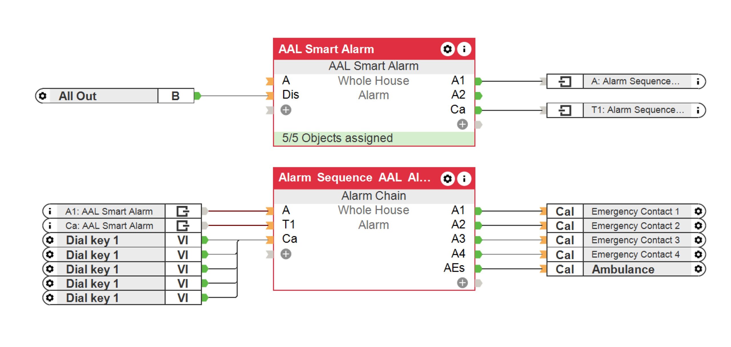 Met de bouwsteen “Alarmketen” kan in enkele minuten zelfs een uitgebreide alarmketen worden geïmplementeerd, die in geval van alarm tot 10 deelnemers via telefoon, e-mail of pushmelding informeert.