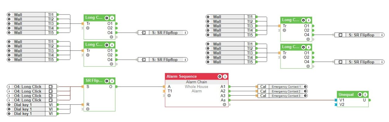 In ons toepassingsvoorbeeld is op deze manier een noodknop voor ouderen gerealiseerd. Als een van de vijf drukknoppen langer dan drie seconden wordt ingedrukt, wordt automatisch een telefonische noodoproep geactiveerd.