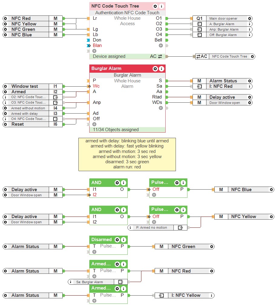 In dit toepassingsvoorbeeld leer je hoe de status-LED’s van de NFC Code Touch kunnen worden gebruikt om de status van het alarmsysteem te visualiseren.