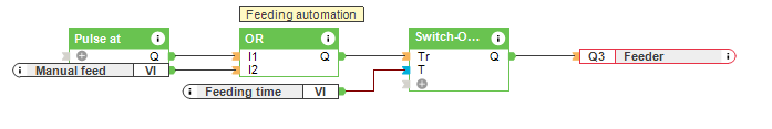 Om de vissen te voeren, kunnen we gebruik maken van een uitschakelvertraging, waar de klant de tijd van de voeding kan aanpassen. Daarnaast is er elke dag om 8 uur ’s ochtends een impuls, maar de klant kan ook kiezen om handmatig te voeden.