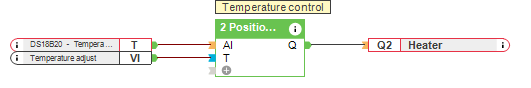 De temperatuur wordt geregeld door middel van een aan/uit-regelaar, waarbij de meting rekening houdt met de vooraf ingestelde afwijking. De verwarming wordt geactiveerd wanneer de temperatuur in het aquarium onder een bepaald niveau zakt. We gebruiken hiervoor een temperatuursensor en een extra 1-wire extension.