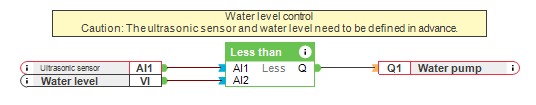 De ultrasone sensor wordt gebruikt om de niveauregeling te automatiseren. Als de door hem gezonden golven een grotere afstand hebben dan vooraf ingesteld, zal de waterpomp starten en water aan het aquarium toevoegen.