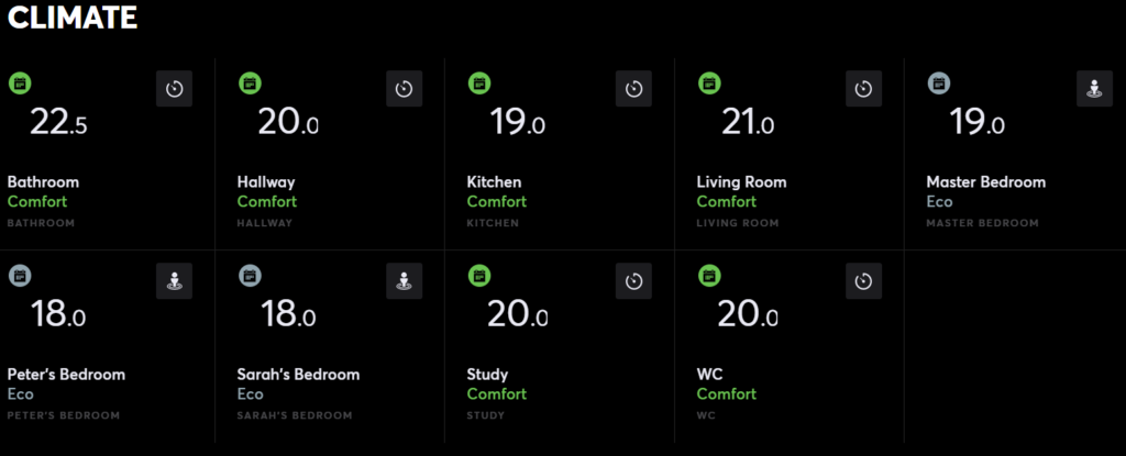 Dit betekent ook dat het in- of uitschakelen van de ketel alleen afhankelijk is van de temperatuur, en dat slechts in één kamer. Een conventionele thermostaat zal geen rekening kunnen houden met andere elementen die slimme huis- en gebouwautomatiseringssystemen kunnen registreren, zoals de passieve warmte van de zon of aanwezigheid. Het systeem zal proberen dezelfde temperatuur te bereiken in elke kamer van het huis, of het nu een lege logeerkamer is, een badkamer die alleen ’s ochtends vroeg of ’s avonds warm hoeft te zijn, of een thuiskantoor dat alleen tijdens weekdagen wordt gebruikt.