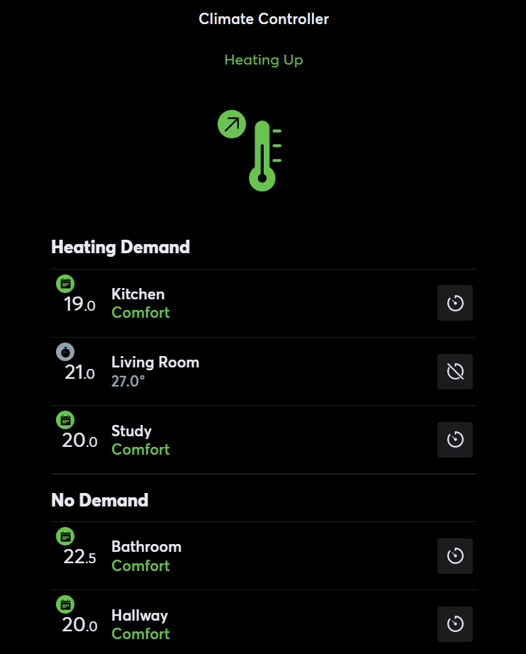 De Klimaatcontroller neemt vervolgens deze waarden en de grootte van de kamer in overweging bij het bepalen van de totale warmtevraag in het gebouw.