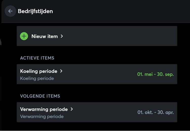 Bij de tab ‘modus’ gaan we selecteren van welke aard de bedrijfstijd is. Het varieert van occasionele dagen tot periodes die elk jaar opnieuw terugkomen.