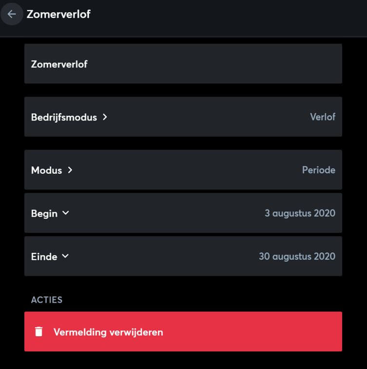 In het overzicht is je nieuwe bedrijfstijd nu opgenomen.
