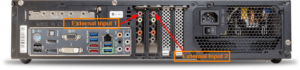 De externe broningangen zijn voorzien van 3,5 mm jack-ingangen aan de achterzijde van de muziekserver.