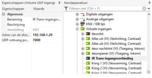 Vul de eigenschappen van “Commando virtuele UDP-ingang” nu als volgt in: