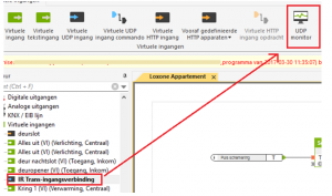 Wanneer nu een telegram met de tekstgegevens “ingang=1” (geldt alleen voor dit voorbeeld) door de Miniserver lxl007f wordt verzonden, geeft de UDP-ingang een puls.