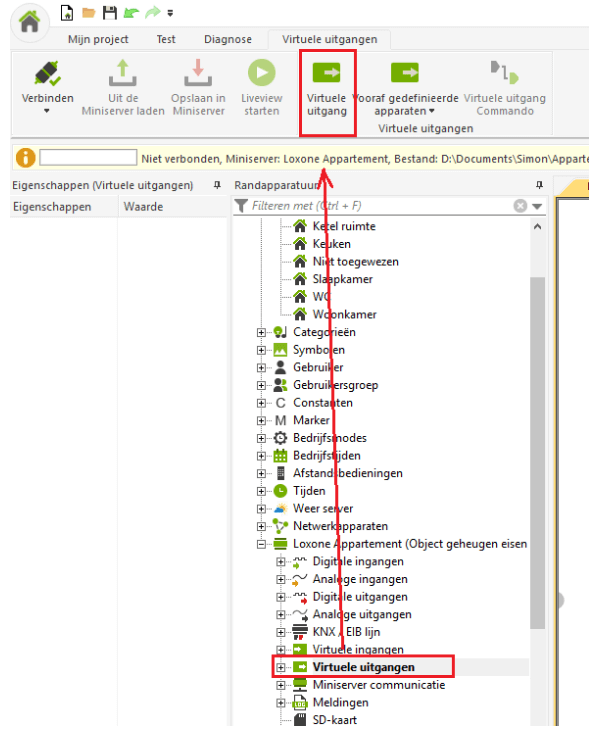 Voeg een virtuele uitgangsverbinding toe.