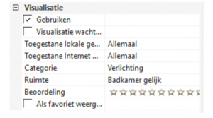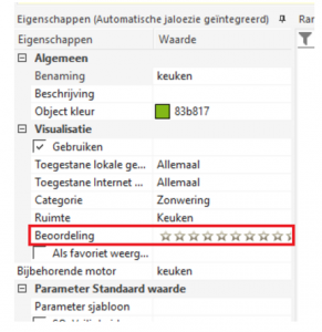 Onder het item “Visualisering” kunt u in het eigenschappenvenster bovendien een score toekennen (0-5 sterren). Deze score bepaalt welke objecten op het startscherm van de visualisering worden weergegeven.