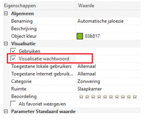 In de component Eigenschappen kunt u de wachtwoordopvraging activeren door het selectievakje “Visualiseringscode gebruiken” te activeren.