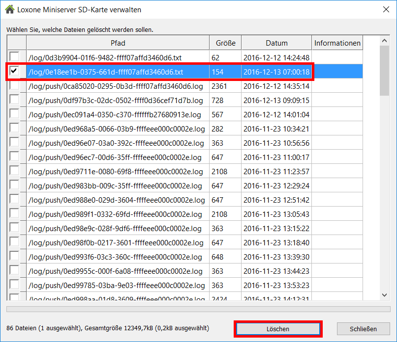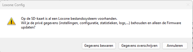 9. Als er al een Loxone-bestandssysteem op de SD-kaart staat, verschijnt het volgende dialoogvenster: